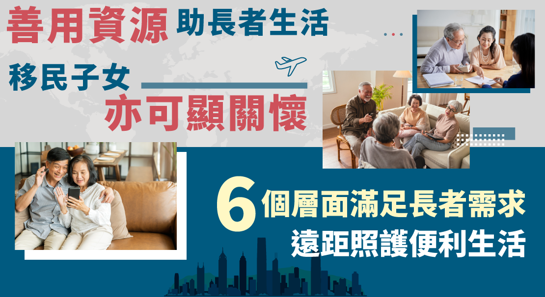子女在外地,難免擔心留港長者不同需要,將這份擔心轉化成積極的態度,協助長者多想想他們的日常需要,即使身在海外,子女都可以照顧到長者的「內」、「外」需要。
